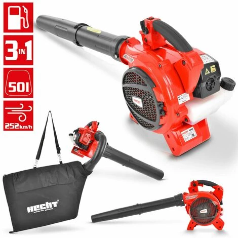 Hecht 9280 Aspirateur souffleur broyeur essence 3en1 252km/h 50 l moteur à deux temps