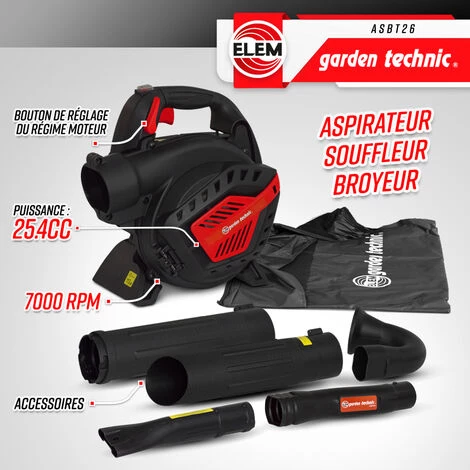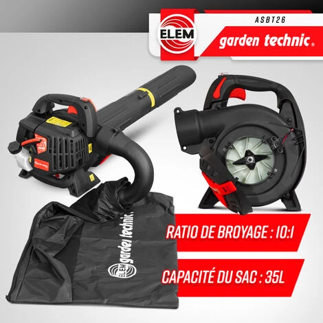 Idéal pour vous débarrasser rapidement et facilement des feuilles recouvrant votre jardin, cet aspirateur-souffleur de feuilles de la marque Elem Garden Technic est équipé d’un moteur thermique de 25.4 CC et dispose d’une vitesse de soufflerie de 245 km/h. Afin de vous éviter un grand nombre de trajets vers le compost, il est équipé d’un sac récolteur de 35 L et dispose d’une fonction broyage. Léger, il offre un confort d’utilisation et une maniabilité optimale.