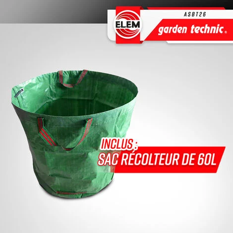 Il est fourni avec un sac d’une capacité de 60L permettant de collecter les feuilles mortes.