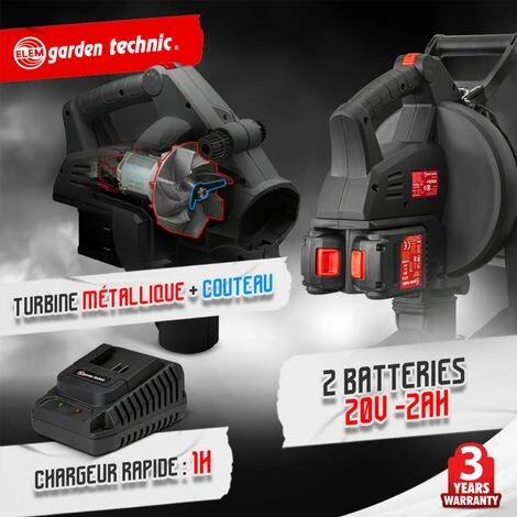 Il est livré avec 2 batteries lithium 20V – 2Ah et un chargeur rapide 1H.