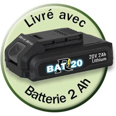 équipé de puissantes batteries Li-Ion 20 V – 2,0 Ah qui lui permet d’être particulièrement performant !