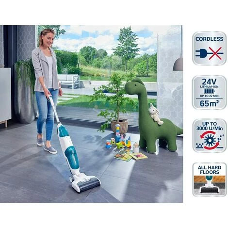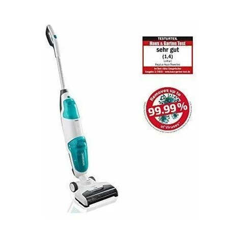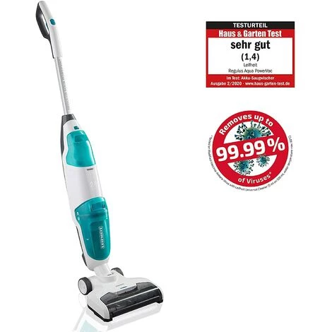 Des sols propres en un tour de main avec le lave-sol aspirant sans fil Regulus Aqua PowerVac de Leifheit. En plus d?aspirer le gros de la salet?, il lave ?galement les sols. Gr?ce ? sa batterie ion-lithium 24?V, l?appareil est sans c?ble et pr?t ? l?emploi. De par son design fin et maniable et son poids l?ger de 3,3?kg seulement, il est facile ? prendre un main. Deux niveaux d?intensit? de nettoyage (les modes Ec