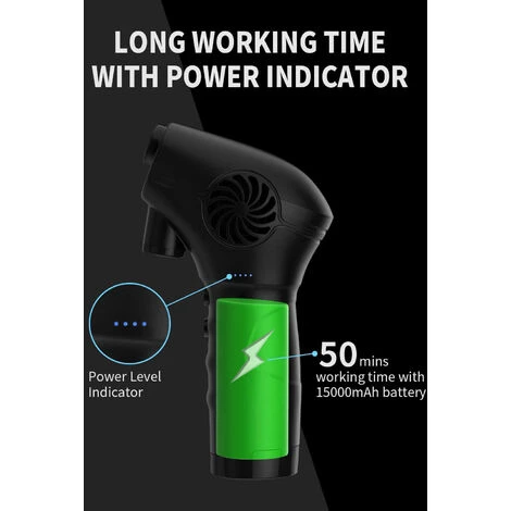 Long temps de travail et indicateur de puissance : Connaitre plus clairement l’etat de la batterie du depoussiereur electronique avec l’indicateur de niveau de puissance. Les batteries au lithium haute capacite de 15 000 mAh permettent au depoussiereur electronique de fonctionner pendant environ 50 minutes en continu sur une seule charge.