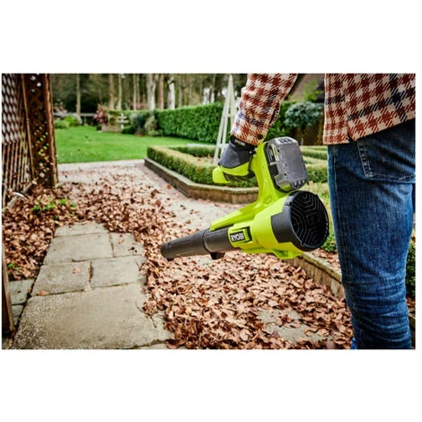 Pack RYOBI Souffleur 18V OnePlus Turbo jet RY18BLA-0 – 1 Batterie 5.0Ah – 1 Chargeur rapide RC18120-150,prêt à l’emploi pour vous aider à vous débarrasser des feuilles mortes dans les petits et moyens jardins jusqu’à 450 m².Doté de la technologie turbo jet, le souffleur vous permettra à la fois de concentrer le flux d’air et de gagner en puissance sans perdre du souffle. Sa poignée ergonomique vous offrira un grand confort d’utilisation