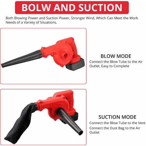 - 【 Souffleur de feuilles et aspirateur sans fil 2 en 1 】 Il s’agit à la fois d’un souffleur de feuilles et d’un aspirateur. Installez simplement la sarbacane dans l’entrée d’air et placez le sac poubelle sur la sortie d’air, et le souffleur deviendra instantanément un aspirateur. La super aspiration vous permet d’aspirer plus facilement la poussière, les poils d’animaux, les biscuits cassés et les biscuits.