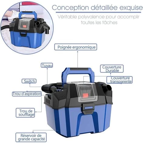 Au lieu d’un aspirateur traditionnel qui a long cordon et une seule fonctionnalité, vous en avez besion d’original! Un aspirateur eau poussière, c’est-dire-que toutes les saletés sèches comme humides seront échappées. Conception sans fil à main, il est également mobile avec poignée confortable. Que vous souhaitiez nettoyer la maison, dégager un trou dépoussiérer les meubles ou encore rendre l’intérieur de votre voiture plus propre.