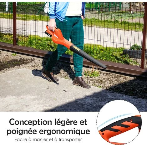 - ★LÉGER ET SIMPLE D’UTILISATION★ Grâce à sa conception légère et compacte, le souffleur de feuilles sans fil ne pèse que 1,7 kg et est un appareil fiable et simple d’utilisation. En actionnant le bouton « interrupteur », le souffleur travaillera dans le jardin.